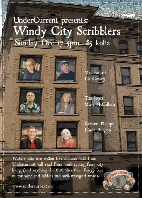 Writers who live within five minutes walk from Undercurrent will read from work sprung from city living (and anything else that takes their fancy). Join us for wine and nibbles and some well-wrangled words.